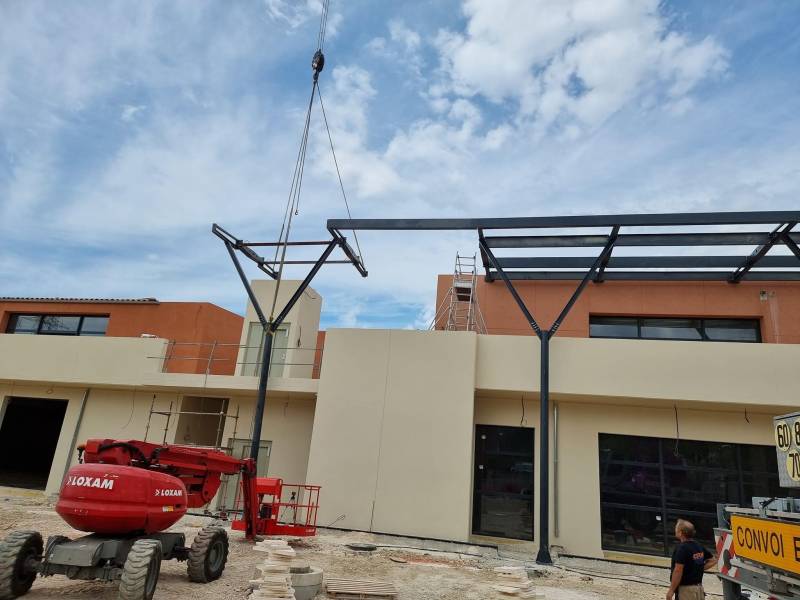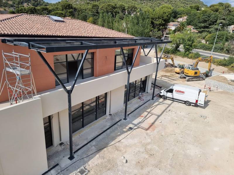Nous avons étudié, fabriqué et posé pour le compte d’un client à Toulon, un auvent en acier totalement thermolaqué pour des bâtiments commerciaux. Chaque pièce a été assemblée dans nos ateliers à La Ciotat.