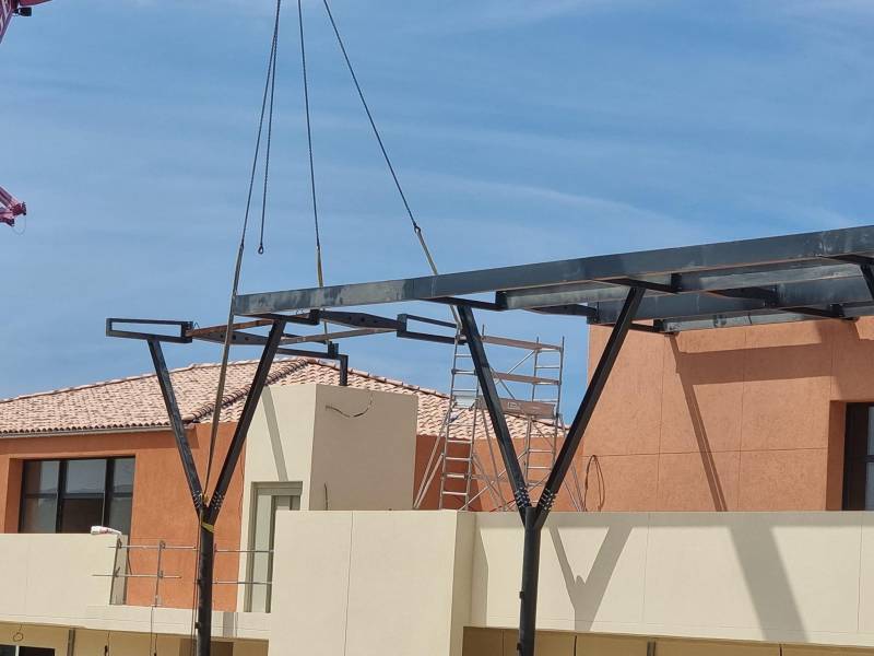 La société CERNI, vous propose la conception, la fabrication et la pose d'un auvent métallique thermolaqué.
